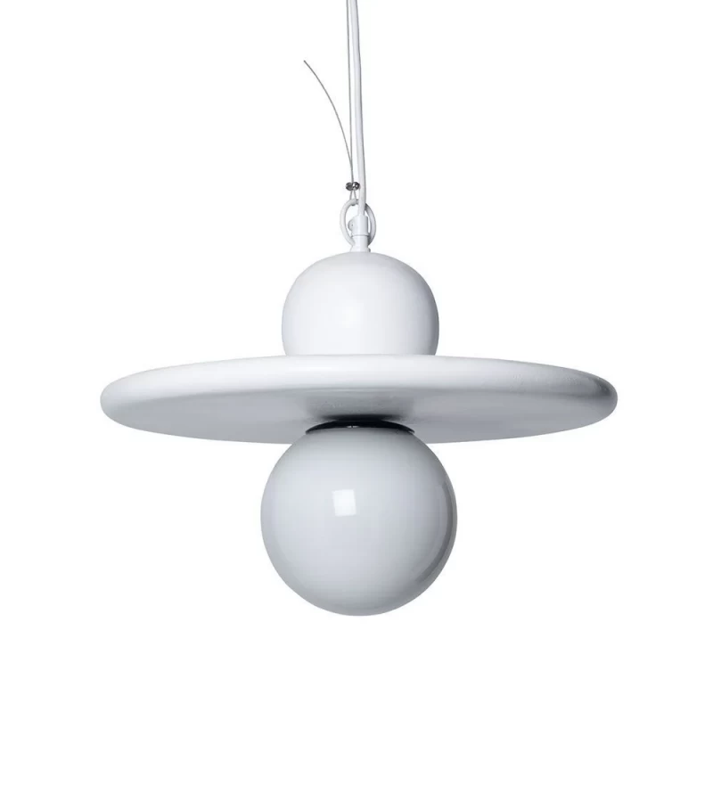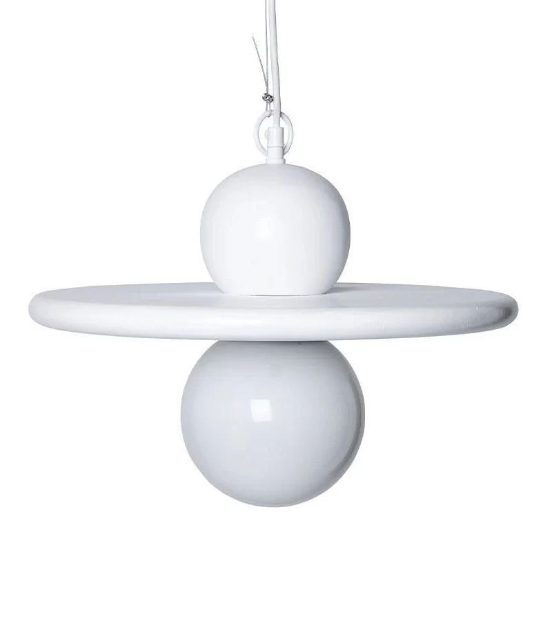 Nouvelle suspension de la collextion Yuma pour la maison réalisée entièrement en bois de manguier blanc et globe en verre. C’est le petit modèle de la collection.