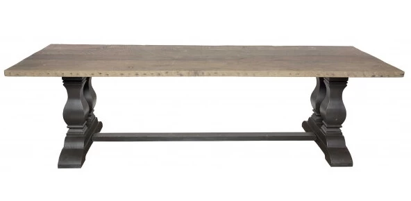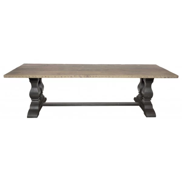 Piètement balustre en pin massif finition noire habillé d’un plateau rectangulaire de belles dimesnsions en vieux pin massif.