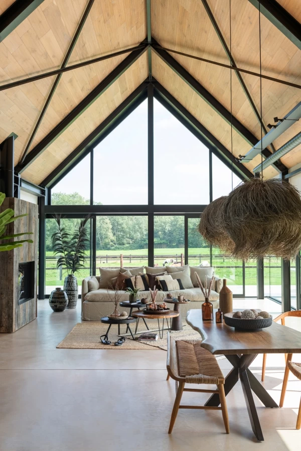 Nouvelle collection de tables réalisées avec un empiètement central en métal noir habillé d’un plateau rectangulaire à la découpe irréguliere en bois d’acacia de couleur naturelle.