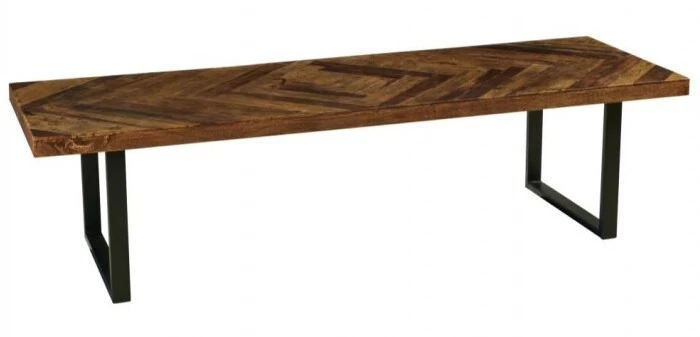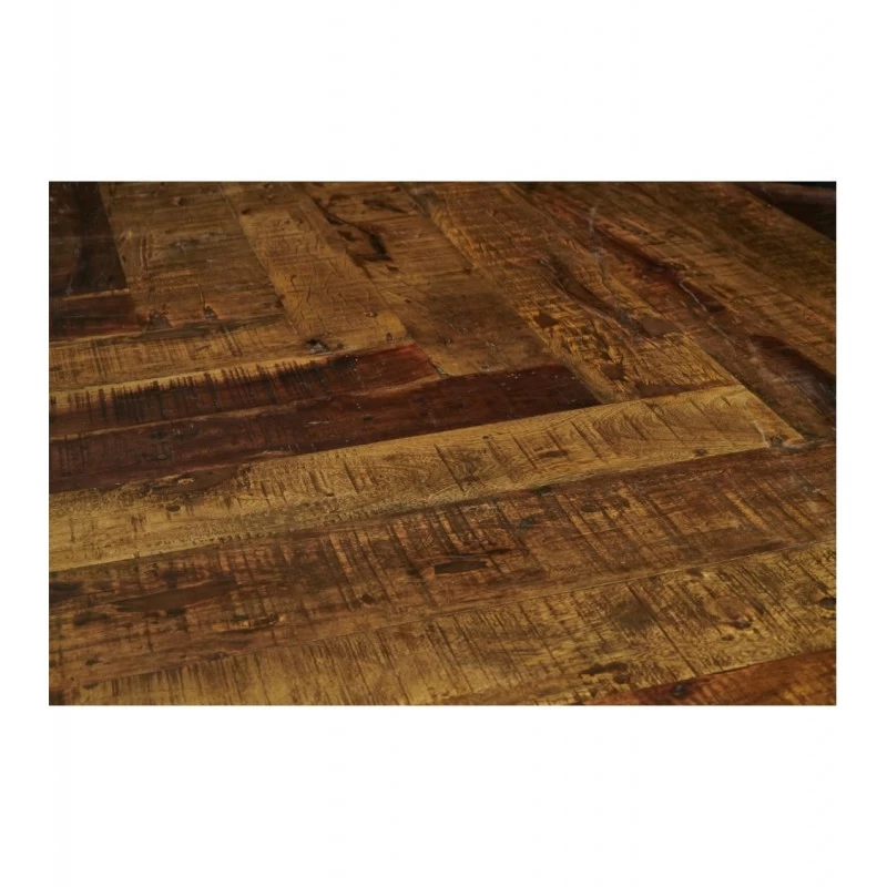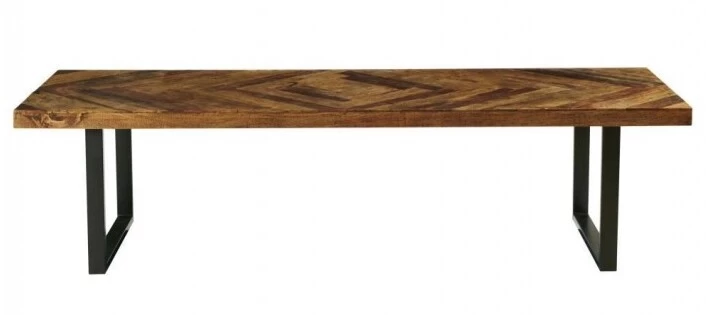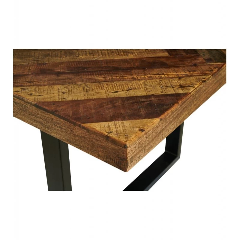 Piètement carré en métal noir et habillé d’un platerau en manguier recyclé. La finition du plateau est réalisée en losange tel un parquet.