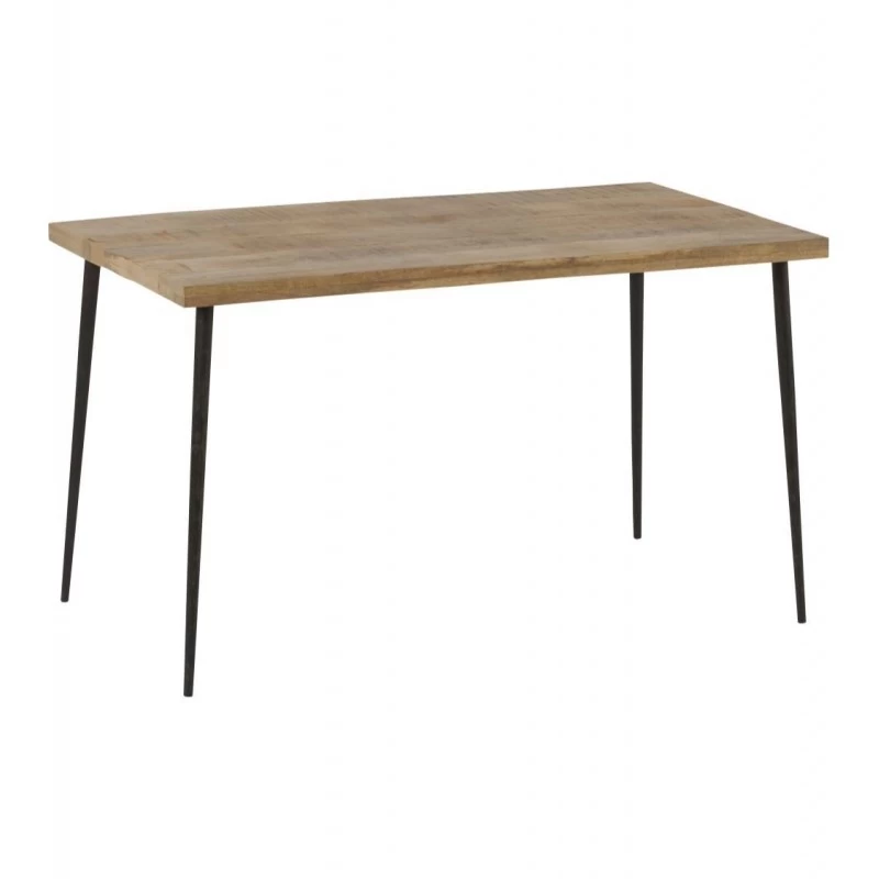 Piètement 4 pieds réalisés en métal noir fin et habillé d’un plateau rectangulaire en bois de manguier naturel vernis.
