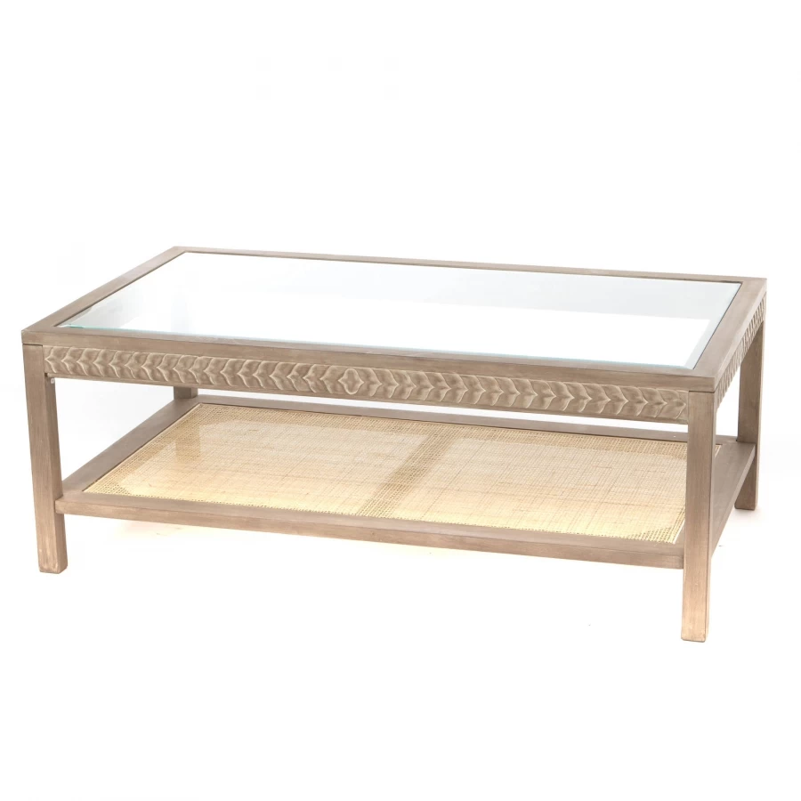 Table Basse de Salon Bois Verre Rotin Inspiration
