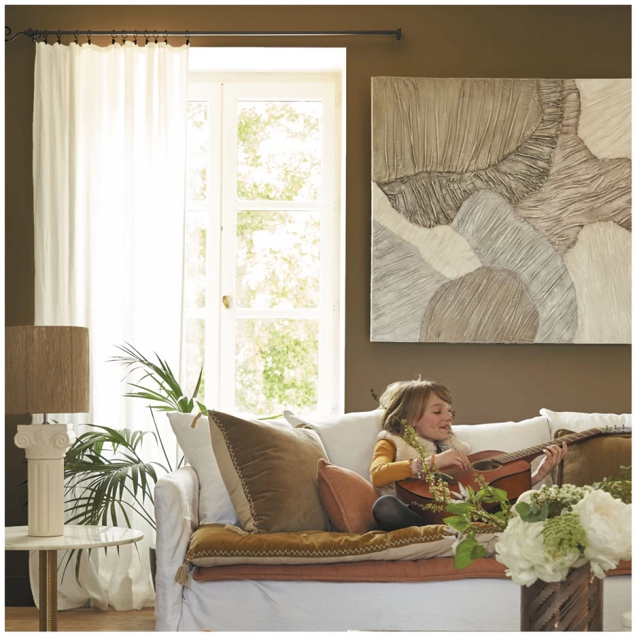La décoration prend une toute autre dimension avec le majestueux tableau HARMONIES. Ses couleurs profondes et son élégant tissu drapé sauront sublimer tous les styles d’intérieurs.