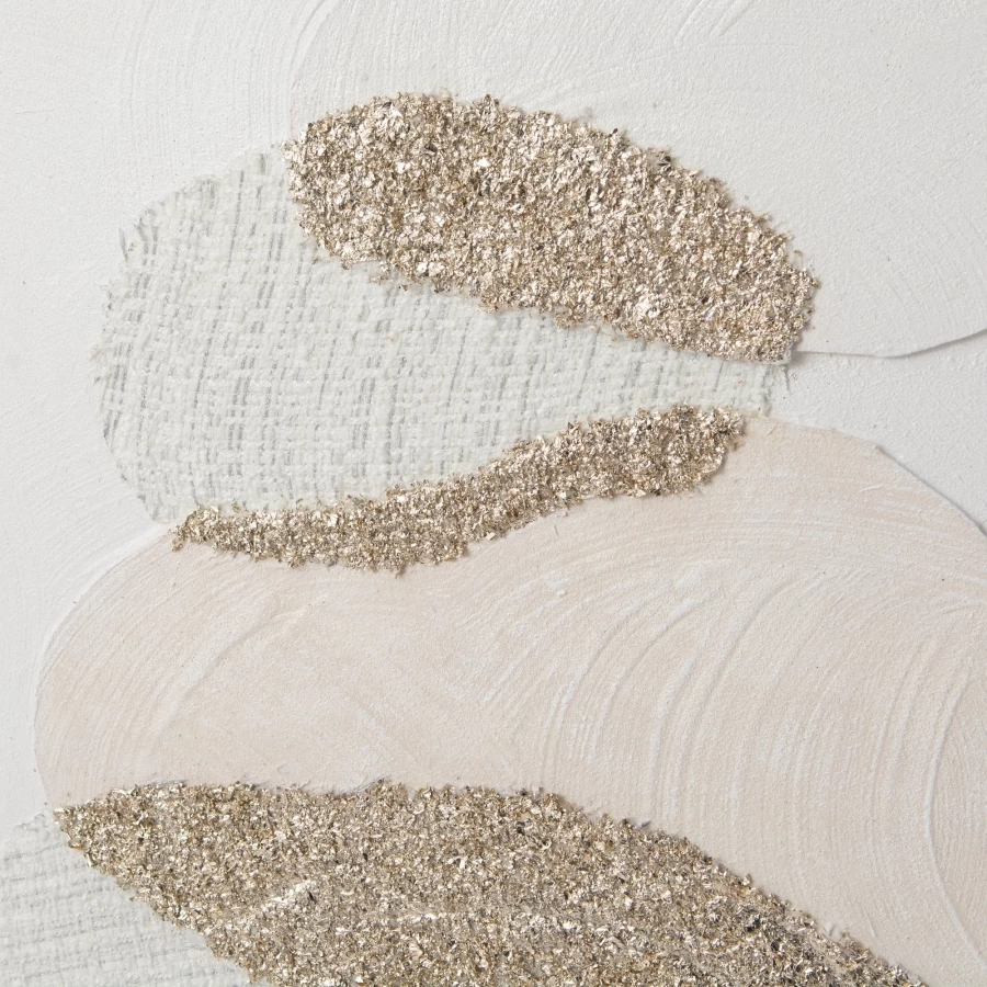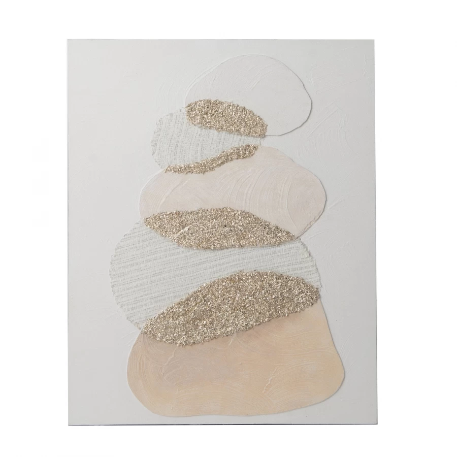 Magnifique toile tendue sur chassis en bois, aux teintes très naturelles. Un peu de douceur avec ces galets enchevêtrés réalisés avec des effets de matières…