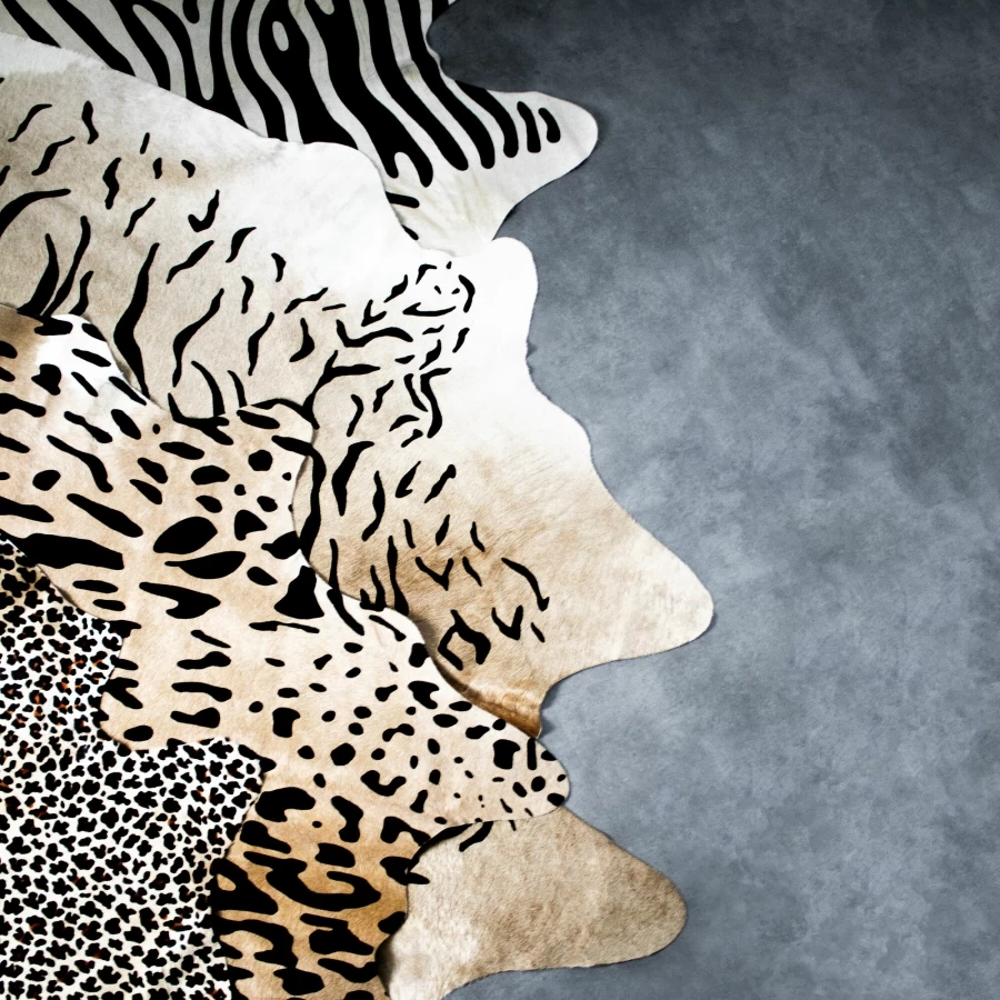 Joli tapis pour habiller votre intérieur réalisé en peau de vache aves des motifs empreintes de girafe.